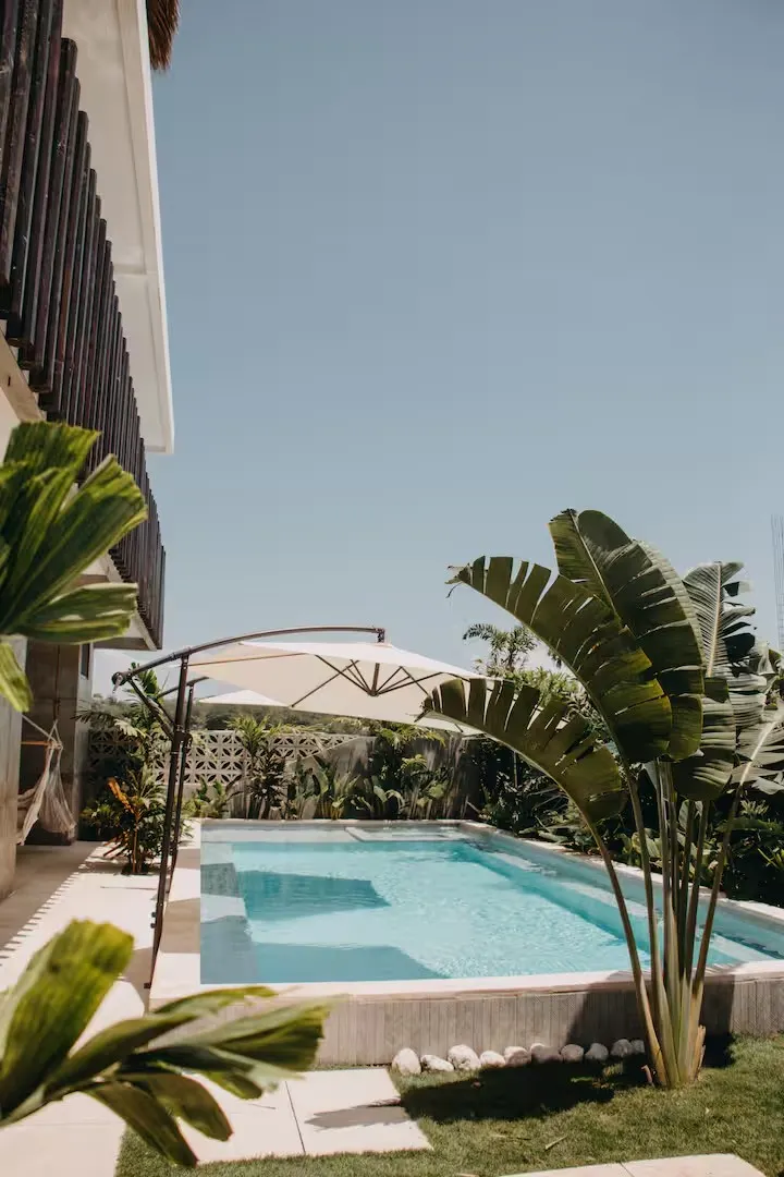 Jardín y piscina
